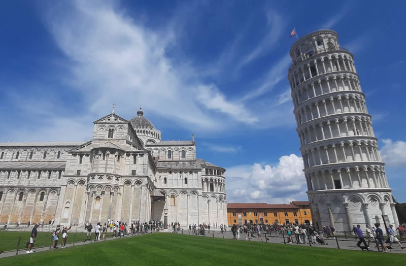 Saca muchas fotos de uno de los lugares más emblemáticos de Italia: la Torre Inclinada. Conocida como la Torre Pendente, fue construida originalmente para servir como campanario de la catedral. Comenzó a inclinarse poco después de su construcción en el siglo XII. Además de contemplar la torre desde fuera, es posible subir a la cima para disfrutar de magníficas vistas y una experiencia única.